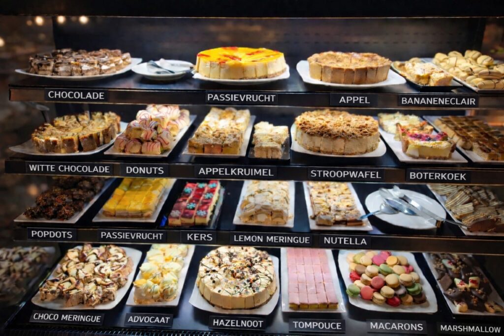 Een goede afsluiting kan natuurlijk niet zonder lekkere toetjes. Speciaal hiervoor hebben we een koelbuffet vol met de heerlijkste huisgemaakte toetjes. Bijvoorbeeld Red velvetcake, Carrotcake, Appeltaart en nog veel meer.